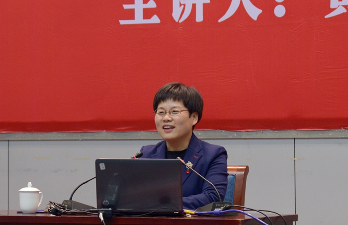 黄伟英从深刻把握党的十九大的鲜明主题、深刻把握习近平新时代中国特色社会主义思想、深刻把握党的十八大以来历史性成就和历史性变革、深刻把握中国特色社会主义进入新时代的重大政治论断、深刻把握新时代中国特色社会主义发展的重大目标和战略部署和深刻把握新时代党的建设总要求等六个方面,解读了党的十九大精神。