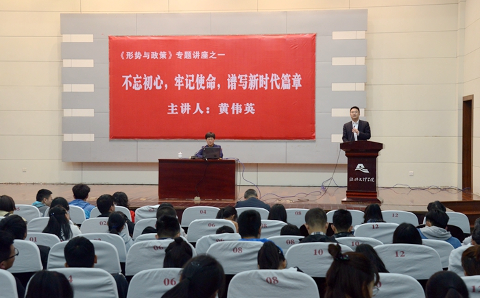 3月26日晚,我校首场《形势与政策》大课堂在铁城科教馆报告厅开讲。市委宣传部副部长、市社科联主席黄伟英为现场450名同学作题为《不忘初心,牢记使命,谱写新时代篇章》的专题讲座。校党委委员、宣传部统战部部长陈均土主持。