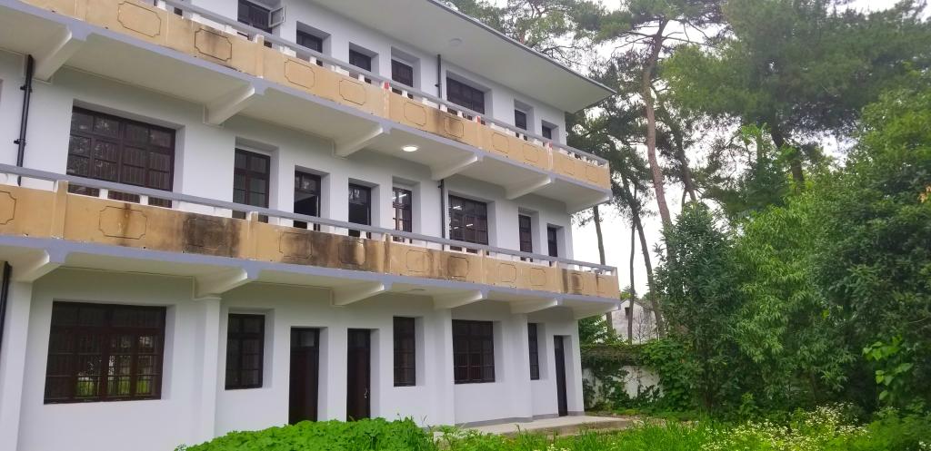 绍兴师专宋六陵旧址修缮一期工程于去年12月12日开工,今年6月正式竣工。对于修缮工程,学校领导高度重视,学校校长办公会议、党委会多次听取宋六陵旧址建设保护利用工作情况汇报。学校宋六陵旧址修缮工作领导小组多次踏勘现场,召开会议,确定宋六陵校园旧址修缮方案、建设规划、建设风貌等。基建处、外联处协调相关设计单位等走访宋六陵老校园近30次,召开协调会近20次。施工启动后,学校基建处克服旧址校舍无原始建筑资料以及时间紧、任务重、要求高等困难,协同对外联络处(校友总会)多方征求老校友、老职工意见,多次组织修缮工作专题会议,商讨建设问题,坚持前期设计与施工监管并重的原则,抓进度、抓质量。短短180天时间,修缮完成6幢主体建筑(建筑面积3100M2)及场外环境整治工作,使原来破败不堪的校舍、校园焕然一新。