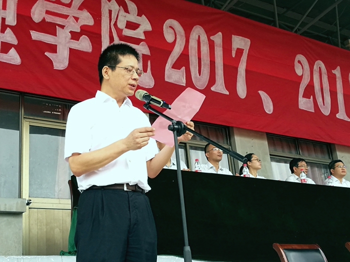 军训团教官代表张鹏在发言中表示,将服从命令,听从指挥,严格训练,科学施教,以身作则,尊师爱生,团结协作,确保高质量完成军训任务。军训团学员代表、数理信息学院孙晗程同学在发言中表示,将一切行动听指挥,认真掌握各项军事技能,学习国防知识,执行内务条例,磨练意志,锻炼作风,争做优秀学子,争当军训标兵。