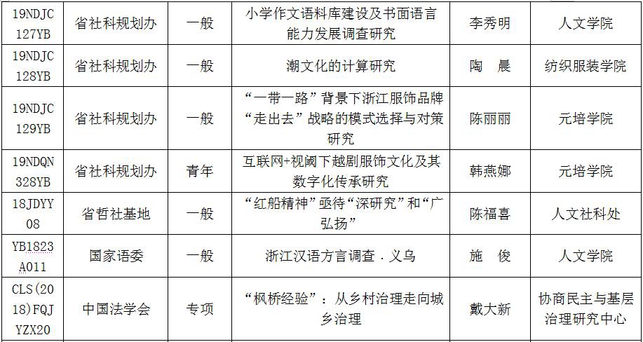 此外,我校还获批省级课题12项,其中浙江省2018年度哲学社会科学规划(基地)立项结果正式公布,我校获批10项,项目数比去年增加1项。