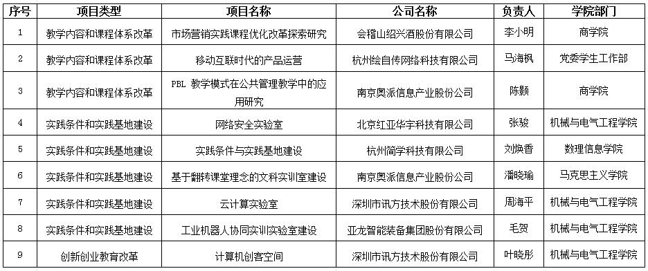 近日,教育部高教司发布《教育部高等教育司关于公布有关企业支持的2018年第一批产学合作协同育人项目立项名单的函》(教高司函〔2018〕47号),我校9个项目成功获得立项。