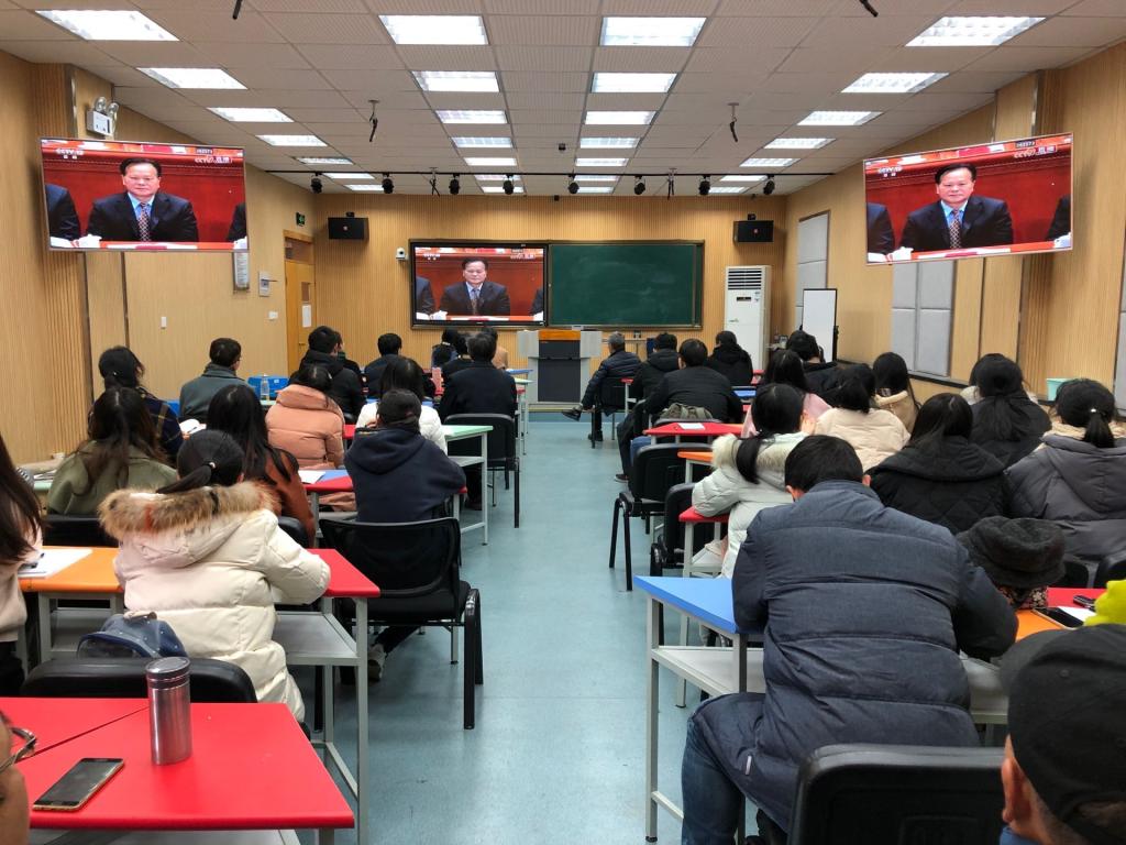 上午10时,学校党政领导班子成员在行政楼四楼会议室收看了大会直播,认真听取习近平总书记的重要讲话;各二级党组织也纷纷组织师生进行了集中收看。