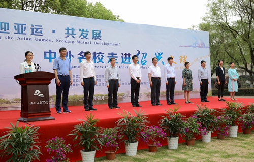 4月21日下午,“迎亚运•共发展”中外名校走进绍兴活动在我校风则江边举行。来自剑桥大学、牛津大学、伦敦大学以及西安交大、同济大学、集美大学等14所国内外著名高校的师生相聚风则江畔、畅叙友情。市委书记马卫光,市委常委、秘书长陆维,副市长顾涛,校长王建力,校党委副书记郝敬习等参加欢迎仪式。顾涛主持欢迎仪式。