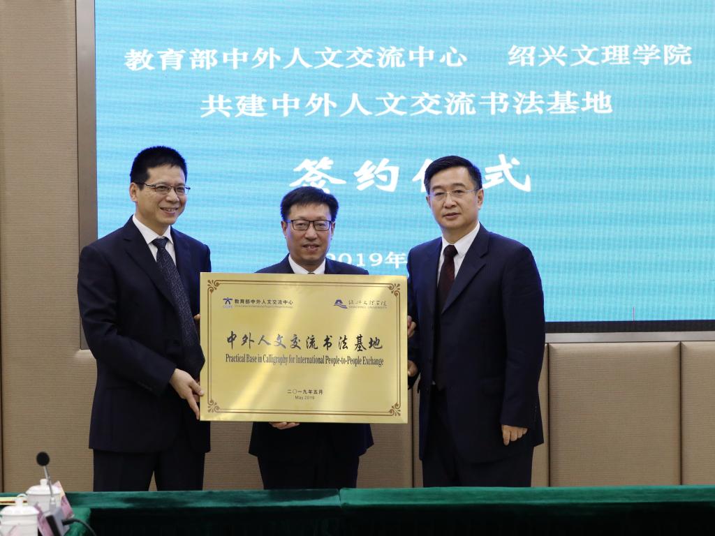 5月21日上午,教育部中外人文交流中心与我校共建中外人文交流书法基地签约仪式在铁城一楼会议室举行。教育部中外人文交流中心主任杜柯伟,教育部中外人文交流中心机制二处处长陈滔伟,绍兴市人民政府副市长顾涛,校党委书记汪俊昌,校长王建力,副校长柳国庆、张宏,学校相关职能部门负责人,人文学院、兰亭书法艺术学院负责人以及我校教育部首批中华优秀传统文化传承基地、浙江省哲学社会科学重点研究基地越文化传承与创新研究中心的相关专家参加签约仪式。
