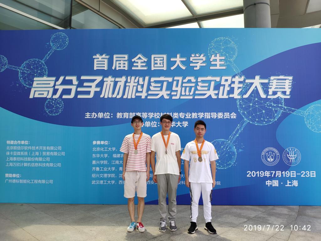 7月19—23日,由教育部高等学校材料类专业教学指导委员会主办的“首届全国大学生高分子材料实验实践大赛”在东华大学纤维材料改性国家重点实验室举办。我校化学化工学院2017级高分子材料与工程专业三位学生代表学校参加决赛。经激烈角逐,我校学子获二等奖一项,三等奖两项。