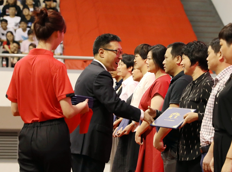 9月2日上午,学校2019级新生开学典礼在河西体育馆隆重举行。校领导汪俊昌、王建力、沈赤、郝敬习、柳国庆、柯羽、张宏、黄坚,校党委委员宣绍龙、陈均土,各二级学院、职能部处、直属单位负责人,全体新生班班主任、辅导员,学生家长代表和2019级新生参加典礼。校党委书记汪俊昌为担任“学生发展特邀联系人”的家长代表颁发聘书。校长王建力致辞。校党委副书记郝敬习主持开学典礼。