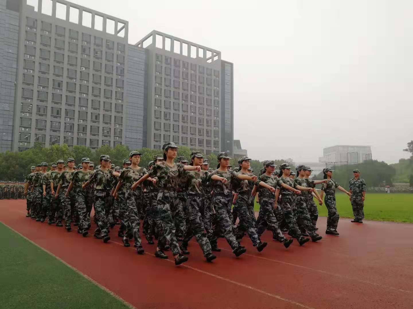 开学典礼结束后,2019级新同学投入到如火如荼的军训之中,在江南初秋的风雨中外塑形体、内塑心魂,通过“军事专家进校园”训家国情怀,通过“军事基本功过关考核”训战斗精神,通过“连队集体大比武”训责任担当,知行合一,为大学四年的学习奠定良好的基础。