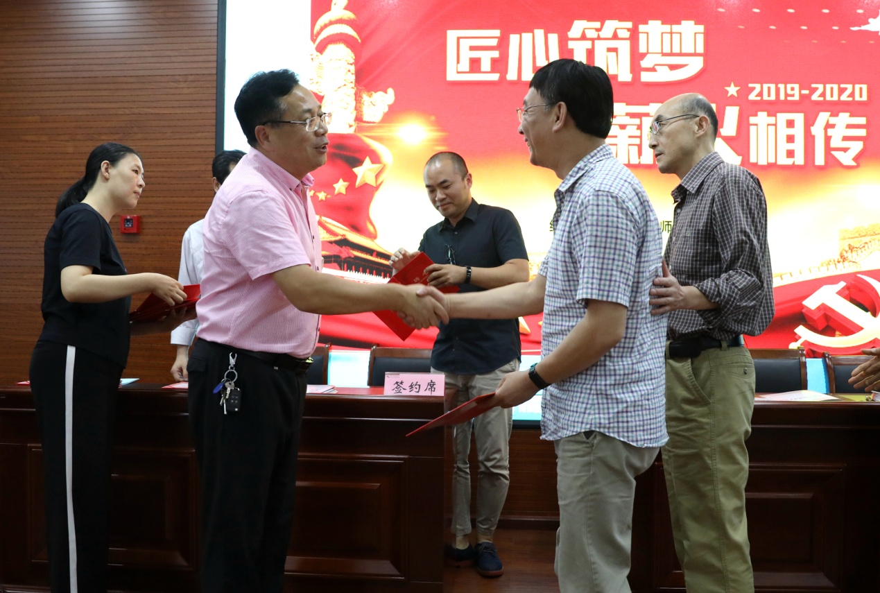 聘任仪式上,柳国庆为每位助讲培养导师颁发聘书。仪式上还举行了导师与青年教师签约、青年教师向导师献花仪式。
