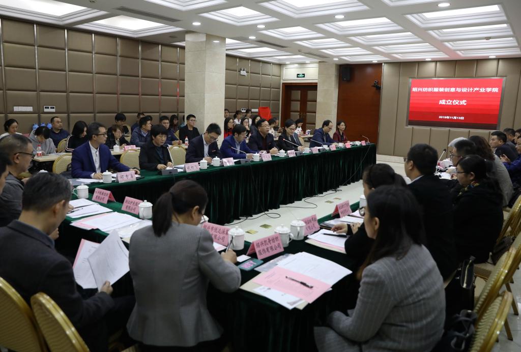11月13日上午,绍兴纺织服装创意与设计产业学院成立仪式在我校举行。副校长柳国庆、绍兴市经信局副局长俞灵燕、绍兴市教育局副局长马成永、柯桥经济技术开发区党工委副书记陈钧,学校相关职能部门负责人、19家纺织服装企业与研究院代表以及纺织服装学院教师代表70余人参加成立仪式。