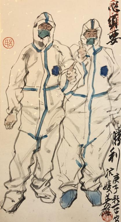 | 国画作品:《“必须要胜利”——抗疫英雄》 |