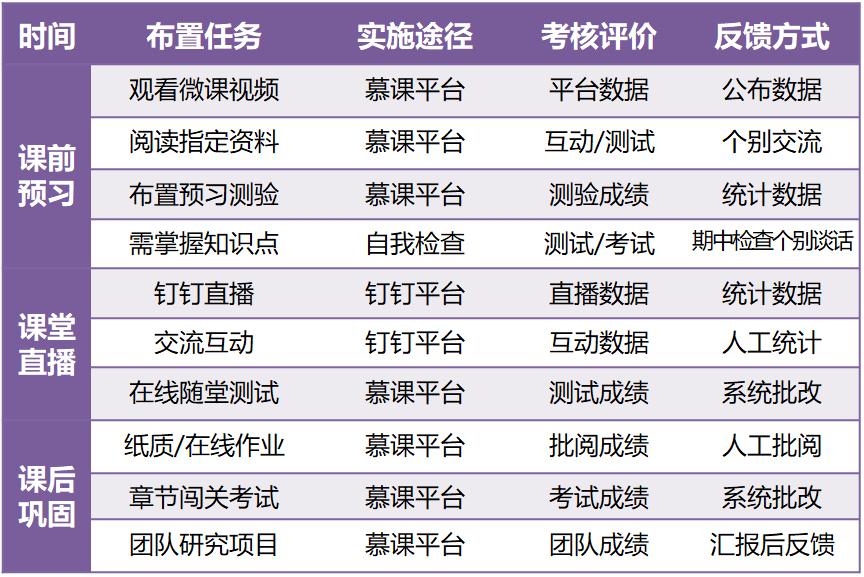 1.采取“钉钉直播+慕课授课”在线教学。根据课程特点和学情分析,为保证教学效果,尽可能达到线上教学与线下课堂教学“同质等效”目标,选择“在线直播为主,慕课学习为辅”在线教学方式。通过前期直播平台使用调查和课前直播尝试,选择在钉钉智能办公移动平台进行直播,经受住全校教师200人在线观看《课程导读设计与实施》培训的直播预演。线上课程在省高校精品在线开放课程共享平台(第4期)和超星泛雅平台(第1期)上分别开课,上传开课前四周所需的教学微视频、PPT课件、电子教材等辅学资料。