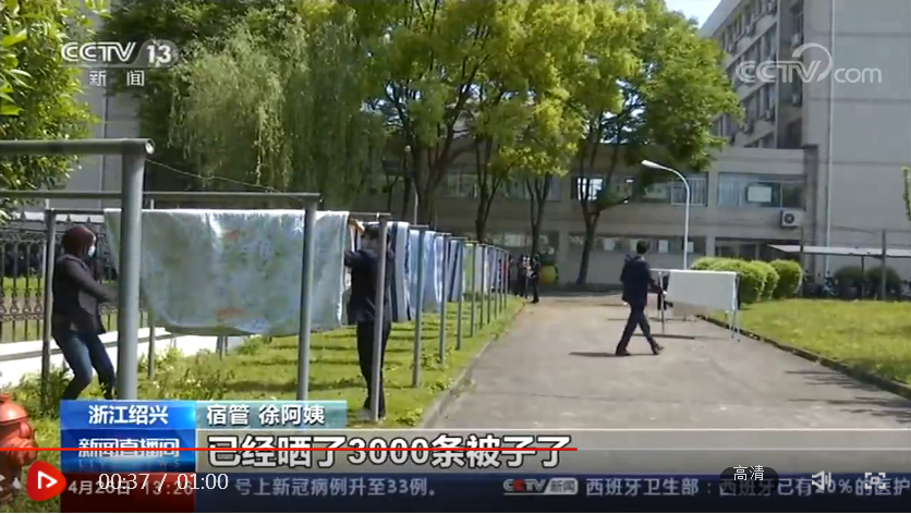央视新闻频道-新闻直播间4月26日报道我校宿管阿姨隔空“接单”,帮助同学们“晒太阳”