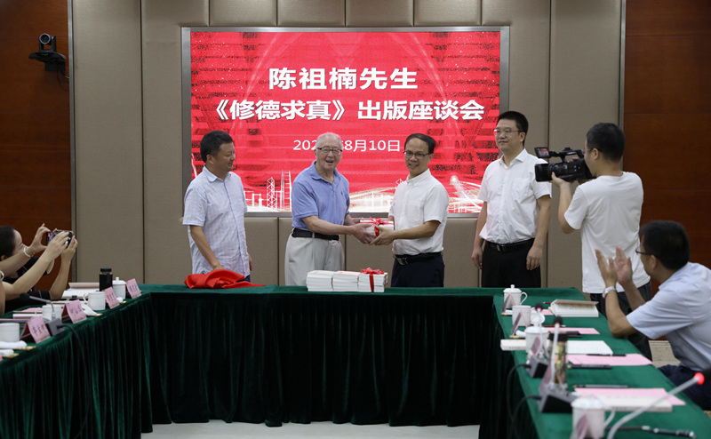 陈祖楠向学校捐赠了自己的新书《修德求真》。