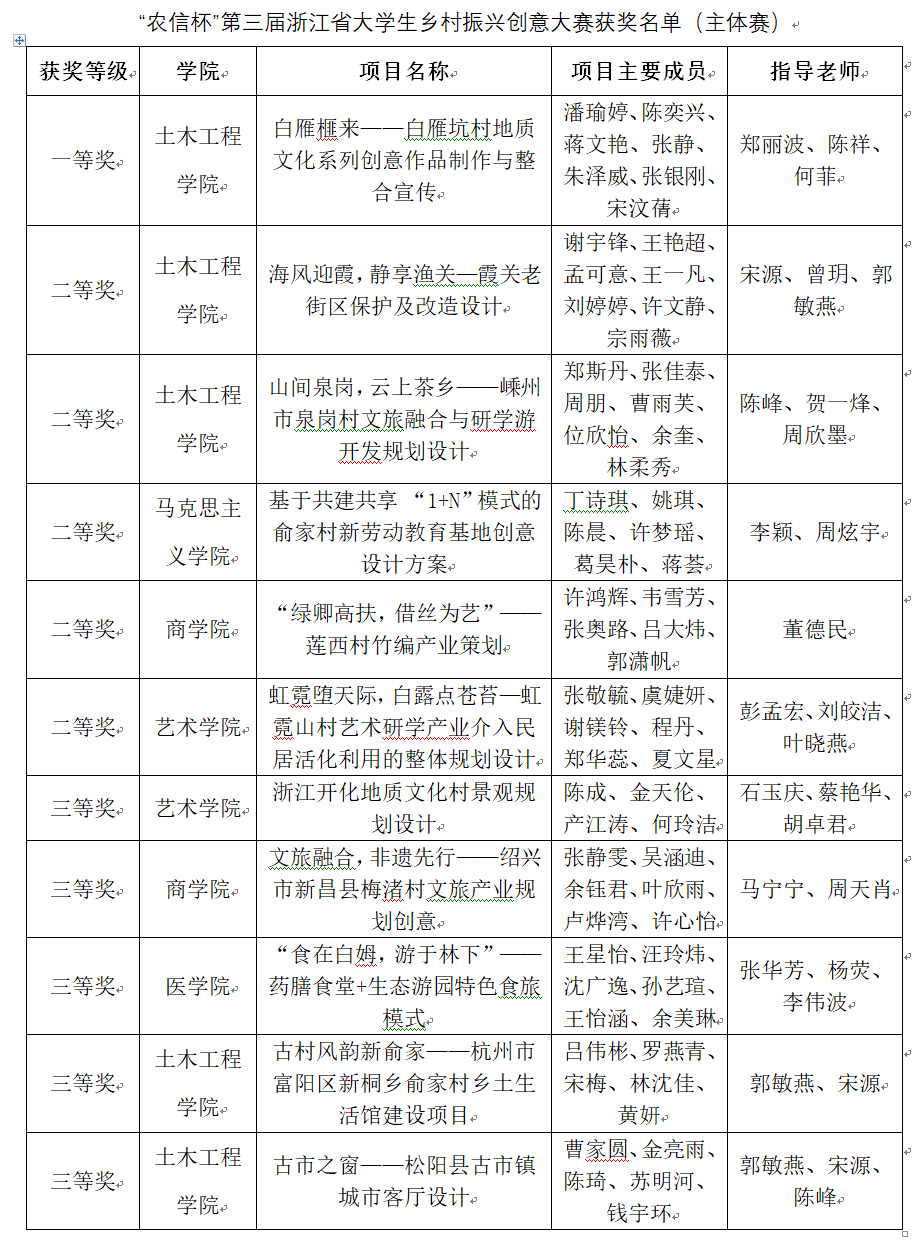 我校学子在“农信杯”第三届浙江省大学生乡村振兴创意大赛中取得优秀成绩