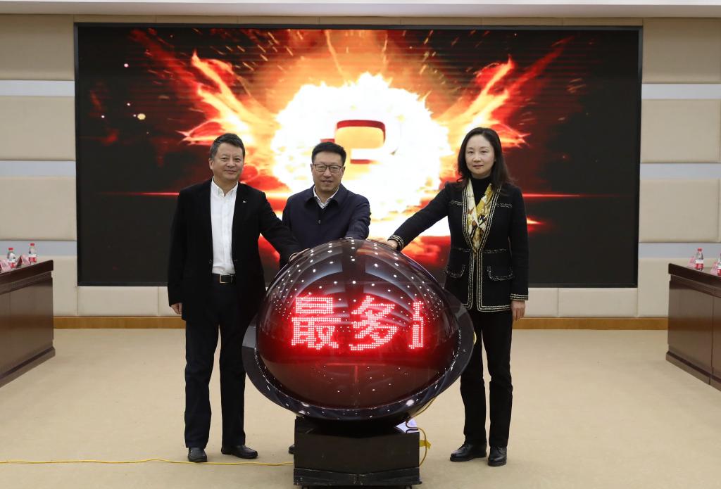 汪俊昌、沈赤、柯羽共同按下启动按钮,标志着学校“最多跑一次”网上办事大厅和电子监察平台正式开通。