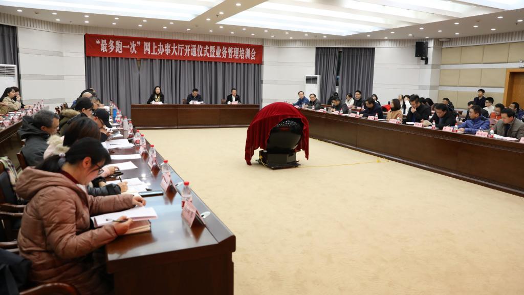 12月16日,学校在图书馆一楼报告厅举行“最多跑一次”网上办事大厅开通仪式暨业务管理培训会。校党委书记汪俊昌,党委副书记沈赤,纪委书记柯羽,党委委员、组织部部长宣绍龙,各职能部门、直属单位负责人、“最多跑一次”改革部门联络员、各二级学院党政办主任以及部分用户代表出席会议。会议由沈赤主持。