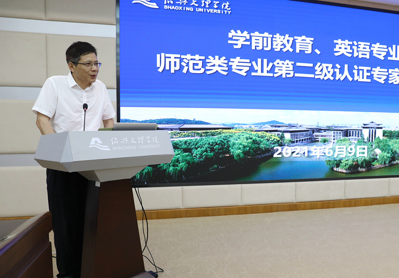 王建力代表学校向与会专家表示欢迎和感谢,并对学校师范教育的历史与成绩作简要介绍。他表示,学校高度重视师范专业认证工作,“学生中心、产出导向、持续改进”的认证理念已逐渐地在我校深入人心。本次接受师范类专业第二级认证的学前教育专业、英语专业2个师范专业具有较好的办学积淀和发展基础。王建力恳请各位专家对2个专业的建设工作进行全方位、深层次的考察和指导,帮助学校查找短板和问题,为认证专业乃至整个学校师范专业发展把脉诊断,提出宝贵的意见和建议。