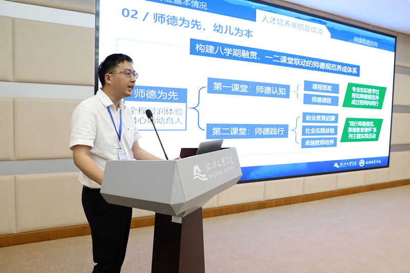 学前教育专业、英语专业相关负责人围绕专业的基本情况、人才培养举措及成效、持续改进方向等内容汇报专业建设情况。