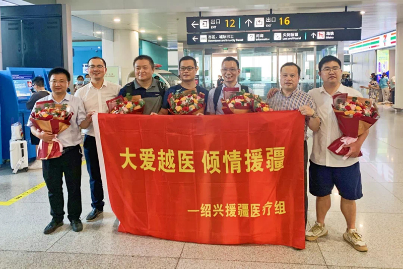 6月29日,绍兴市第十批第一期援疆医疗队凯旋而归(李旦左一)
