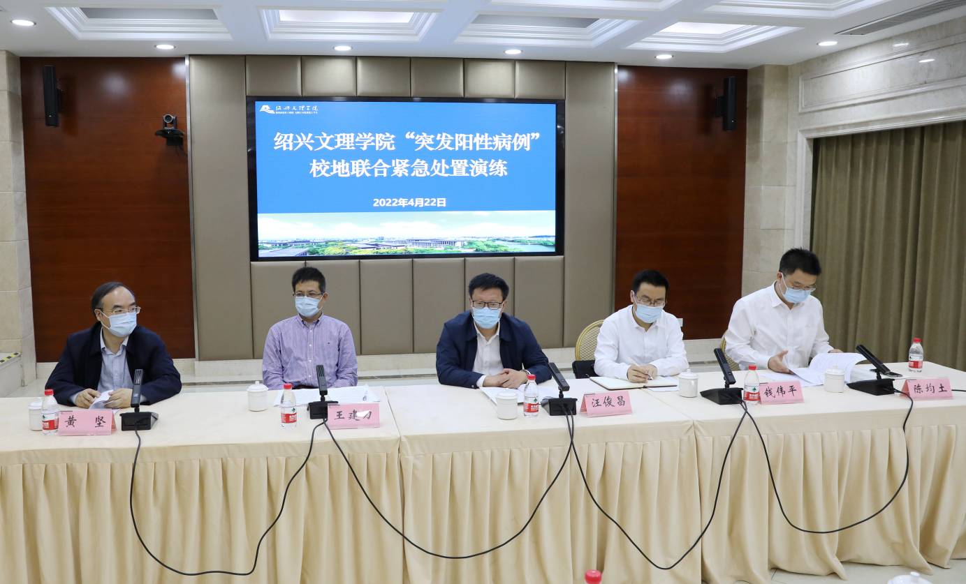 为贯彻落实省、市教育主管部门及属地疫情防控要求,进一步推动疫情防控“七大机制”落实落地,全面提高校地联合应对突发疫情的应急处置能力,4月22日下午,我校在风则江校区举行“突发阳性病例”校地联合紧急处置演练。校党委书记汪俊昌,校长王建力,副校长黄坚、陈均土,越城区人大常委会副主任钱伟平,绍兴市疾控中心病媒生物预防控制科科长蒋国钦,越城区塔山街道党委书记叶海木、副主任章雨晴,越城区疾控中心副主任马锡军,市、区教育局,市、区学校代表以及我校相关职能部门、各二级学院负责人参加演练。