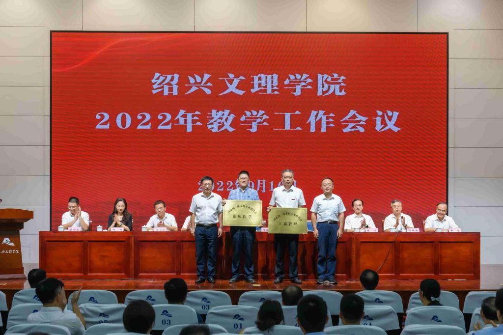 汪俊昌和赵阳为国家一流专业临床医学、工商管理专业授牌,为省一流专业小学教育、数学与应用数学、自动化专业授牌。