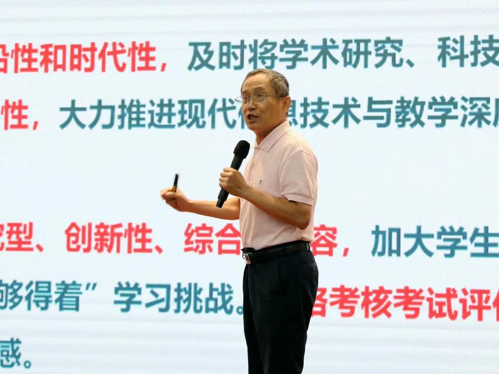 汪俊昌强调,课程建设是高校内涵建设的核心环节,是教学建设的基础工程,要准确把握高质量推进课程建设的内涵要求。一是课程思政树“魂”,在课程建设过程中,既要着眼于提高人才专业核心能力来重构和优化学科课程内容,又要结合专业教学融入思政元素,努力探索育人为本、学生中心、知行合一的课程建设新路径。二是科教融合强“基”,落实并深化科教融合,要求教师既要重视科研,也要重视教学,特别是通过科研促进教学,将学科优势转化为人才培养优势。三是产教融合扶“特”,不同学科和专业要根据自身特点探索不同的产教融合课程模式,以企业和行业岗位为导向设计课程内容,强化现场实践教学,培育一批具有应用型特色的一流课程。四是数字技术创“新”,必须紧跟数字化教学的新形势,利用教育新技术赋能课程建设,提高课程“含金量”和教学“吸引力”。五是内涵建设提“质”,要加强课程开发和设计,重视教材和资源建设,改革课堂教学,改进教学评价,坚持持续改进,坚持教学相长。
