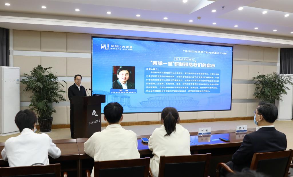 10月24日晚,我校在图书馆一楼报告厅举办“风则江大讲堂”332讲“请历史记住他们——‘两弹一星’研制带给我们的启示”活动。中国科学院老科学家科普演讲团成员、中国科学院文献情报中心三级职员何林老师莅临讲座现场。讲座由校党委委员、党委宣传部部长梁瑜主持。