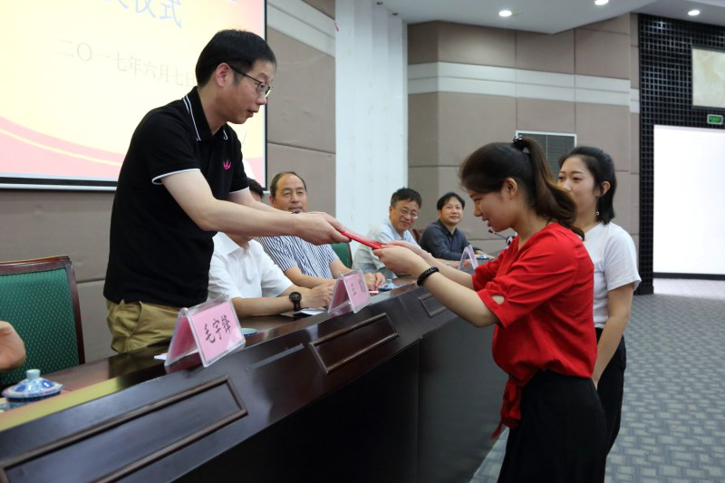 兰亭书法艺术学院负责人介绍了兰亭奖学金评选情况并宣布表彰决定,共有12位同学分获考研优秀奖和毕业创作优秀奖,鲍贤伦校友和王震校友分别为获奖学生颁奖。