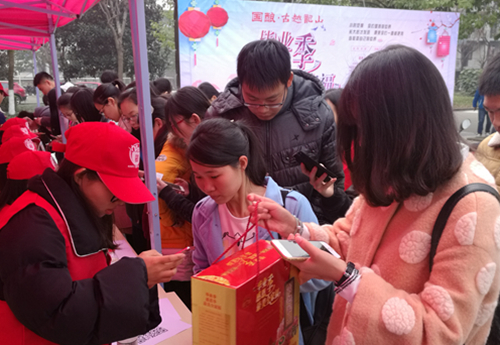 活动现场气氛非常火爆。近1500名大四毕业生在春节回家前夕领取到了专门为其父母定制的新年礼物——由古越龙山提供的中央库藏10年2瓶礼盒装精美礼品。很多同学表示,毕业之际,内心非常激动,寒窗苦读二十余载,既有自己的不懈努力,更有父母在背后含辛茹苦的默默付出,携一份感恩礼物回家,能够表达对父母养育之恩的感激。
