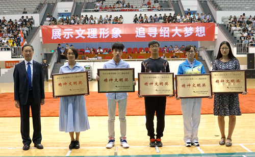 伴随着精彩的文体表演,运动会总裁判长王嫣和校第二十二届运动会组委会委员、精神文明评议组副组长吕志伟分别宣布本届运动会各项竞赛排名和精神文明奖获奖情况。在“三大球、三小球”项目中,篮球比赛男子组前三名为竞雄书院、成章书院、仲申书院,女子组前三名为竞雄书院、树人书院、仲申书院;排球比赛中,男子组前三名为竞雄书院、树人书院、阳明书院,女子组前三名为竞雄书院、仲申书院、文澜书院;足球比赛中,男子组前三名为竞雄书院、仲申书院、建功书院。田径项目中,元培学院、东山书院、阳明书院、建功书院、成章书院、树人书院分获学生组团体前六名;附属医院、数理信息学院、上虞分院、人文学院、化学化工学院、法学院分获教职工组团体的前六名。数理信息学院、医学院、美术学院、经管学院、化学化工学院、附属医院、以及仲申书院、建功书院、阳明书院、成章书院,树人书院获精神文明奖。元培学院、竞雄书院、建功书院、树人书院、阳明书院、仲申书院获得本届运动会综合团体总分前六名。校领导分别为获奖代表队颁奖。