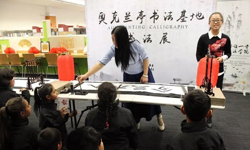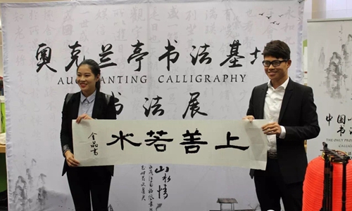 展览当日,新西兰陶波市市长大卫•爵瓦阀斯先生亲自为该市第一个中国书法展开幕致辞。同时,大卫•爵瓦阀斯市长热烈欢迎我校“百人计划”书法团的师生,感谢师生们对此次书法展的辛勤付出。开幕式上,我校师生与陶波市TE KURA O WAITAHANUI小学学生代表开展了生动有趣的书法教学互动以及绍兴传统越剧表演。我校兰亭书法艺术学院苏晓敏老师与陶波市市长大卫•爵瓦阀斯共同泼墨,书写下“绍兴TAUPO”友谊的墨宝。