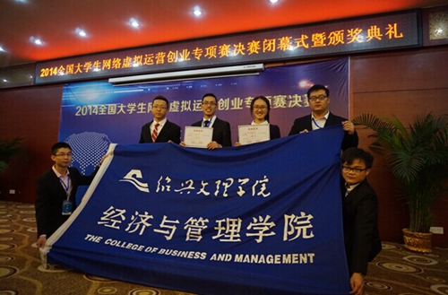 11月15日,由共青团中央学校部、全国学联秘书处主办的2014全国大学生网络虚拟运营创业专项赛决赛在江西省九江市共青科技职业学院举行。经过前期的精心准备和策划指导,历经预赛、复赛,我校由唐奇老师指导,徐坚、殷灏、屠安妮同学为代表的“Forsource”团队,以及由庞飞老师指导,王佳伟、孙必烈、胡波同学为代表的“南山四弟”团队同时入围决赛,经过一天的激烈角逐,分别获得全国总决赛一等奖和二等奖,实现了我校在该项竞赛成绩上的历史性突破。