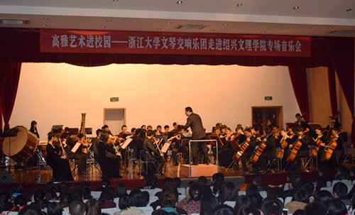 12月5日,2014年浙江省“高雅艺术进校园”交响乐专场音乐会在我校月明楼演播厅隆重上演,来自浙江大学的文琴交响乐团为我校师生送上了艺术和精神的盛宴。