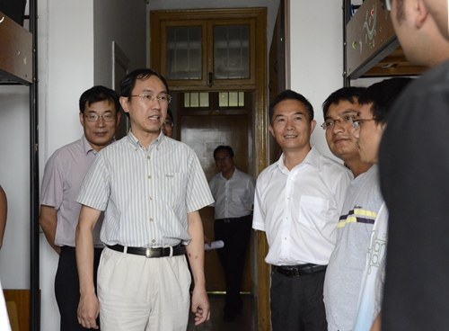 9月12日下午,叶飞帆校长、校党委唐和祥副书记一起走访2014级研究生报到点,并走访寝室,看望刚报到的研究生、慰问贫困新生等。随行的有党办、校办和学工部负责人。
