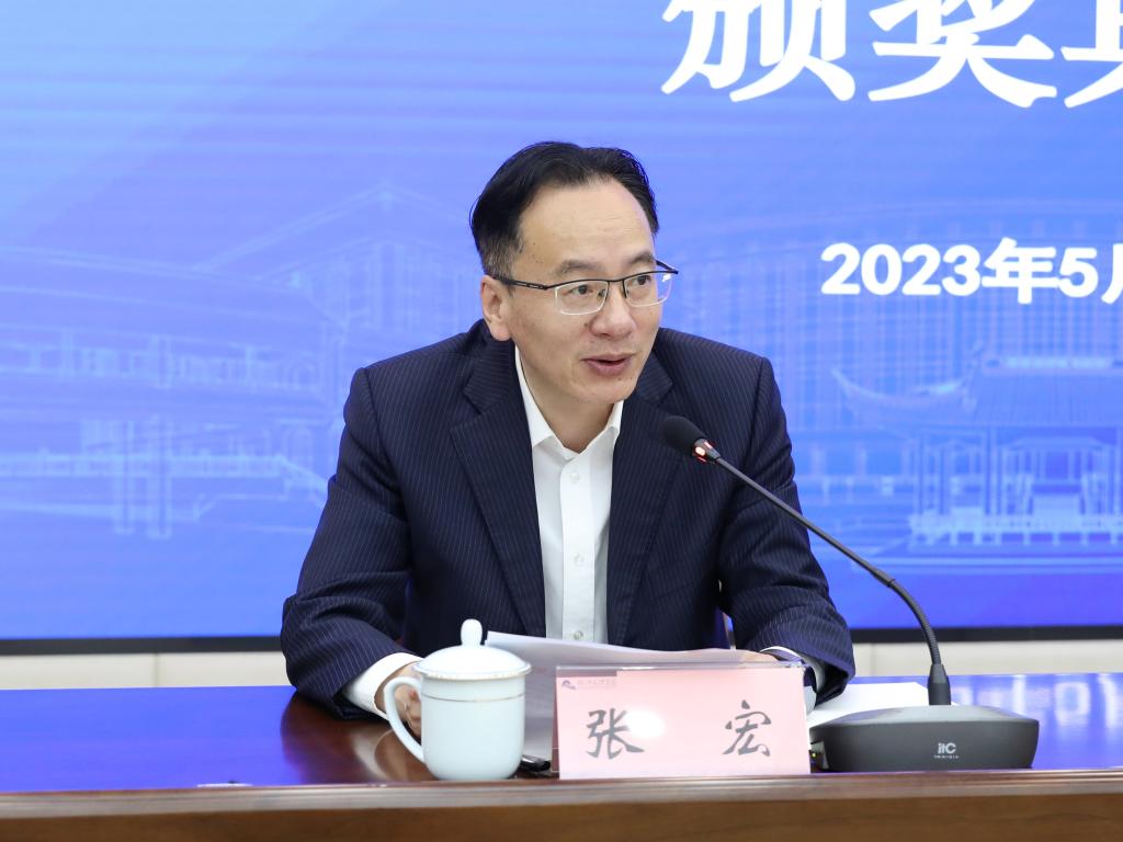张宏宣读第二届退役士兵“戎耀之星”奖学金表彰决定。苏光耀等10位同学获得第二届退役士兵“戎耀之星”奖学金。