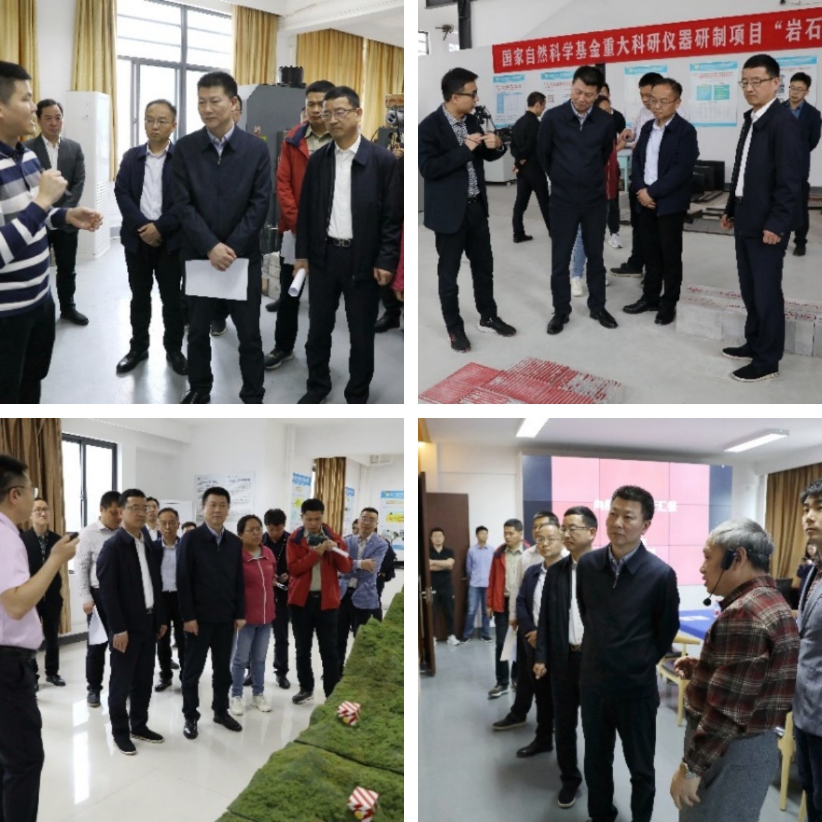 熊自力一行首先听取了重点实验室的总体介绍,随后参观了实验室高精度三维成像系统(CT)、高刚性岩石力学试验系统(MTS),以及自主研发的THMC耦合作用岩石裂隙剪切试验系统、岩石结构面尺寸效应试验系统、深部地质灾害远程监测预警系统与岩石力学“背包实验室”系列装备,参观过程中与实验室科研人员就相关问题进行了深入的交流。