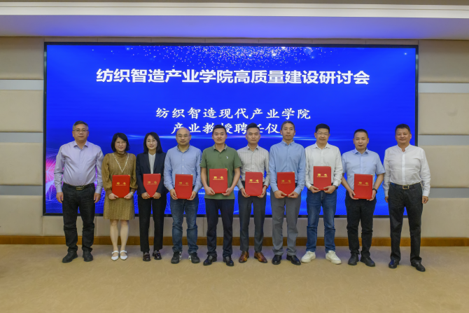 产业学院高质量建设研讨会以“高端纺织、智慧设计、智能制造”为研讨主题,现场发布了纺织智造现代产业学院建设动态VCR,纺织智造现代产业学院与成员单位签订了浙江省新工科教材共建协议以及产业学院共建课程协议,聘任了首批产业教授,同时还成立了由现代产业学院理事会成员单位发起的纺织智造现代产业学院纺织人才发展基金会,用于培养高水平的应用型纺织服装类专业人才,服务绍兴及其周边区域现代纺织产业发展。