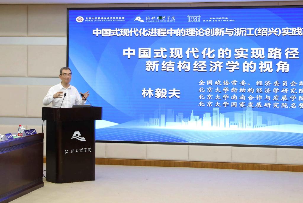 林毅夫教授在致辞中指出,党的二十大报告提出,以中国式现代化全面推进中华民族伟大复兴是中国共产党从现在开始的中心任务;实现中华民族伟大复兴是近代以来中国全体人民的共同梦想。在中国共产党的领导下,中华民族的伟大复兴已经到了不可逆转的阶段,但当前百年未有之大变局加速演进,发展仍面临各种挑战。面对挑战,我们需要有新的理论来指导实践。新结构经济学植根于我国的实践经验总结,浙江(绍兴)在中国式现代化建设进程当中的经验值得总结。同时,新结构经济学建立在王阳明提出的“知行合一”哲学基础上,此次学术研讨会在阳明故里浙江绍兴召开,将会为新结构经济学的理论创新提供更多思路与帮助。