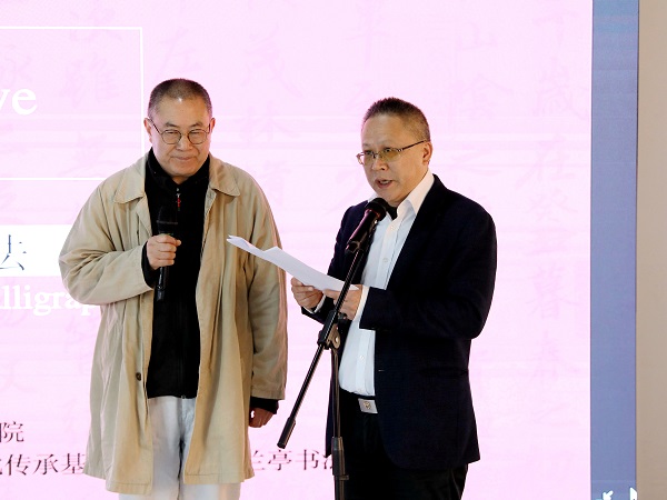 莫骄表示,书法是中华文化的瑰宝,书法教育是促进中外民间交流的重要渠道,海外“兰亭书法学堂”展现了不同文明间的文化艺术交流成果,要继续发挥好中国书法沟通中外文化和艺术交流的桥梁作用。王飞分享了海外学员学习书法的故事,展现出对中国书法文化的喜爱。