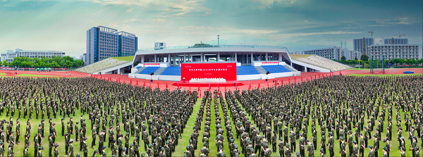 9月3日上午,我校在南山田径场举行2024年学生军训开营仪式。绍兴军分区大校司令员王京东,校长赵阳,副校长柳国庆,校党委副书记黄坚,校党委委员、宣传部部长、军训团政委宋浩成,越城区人武部上校部长罗劲松,越城区人武部上校政治委员李伟,校党委学工部、人武部部长、军训团参谋长宣海江,校军训领导小组全体成员,全体教官和连队指导员、参训学生参加开营式。