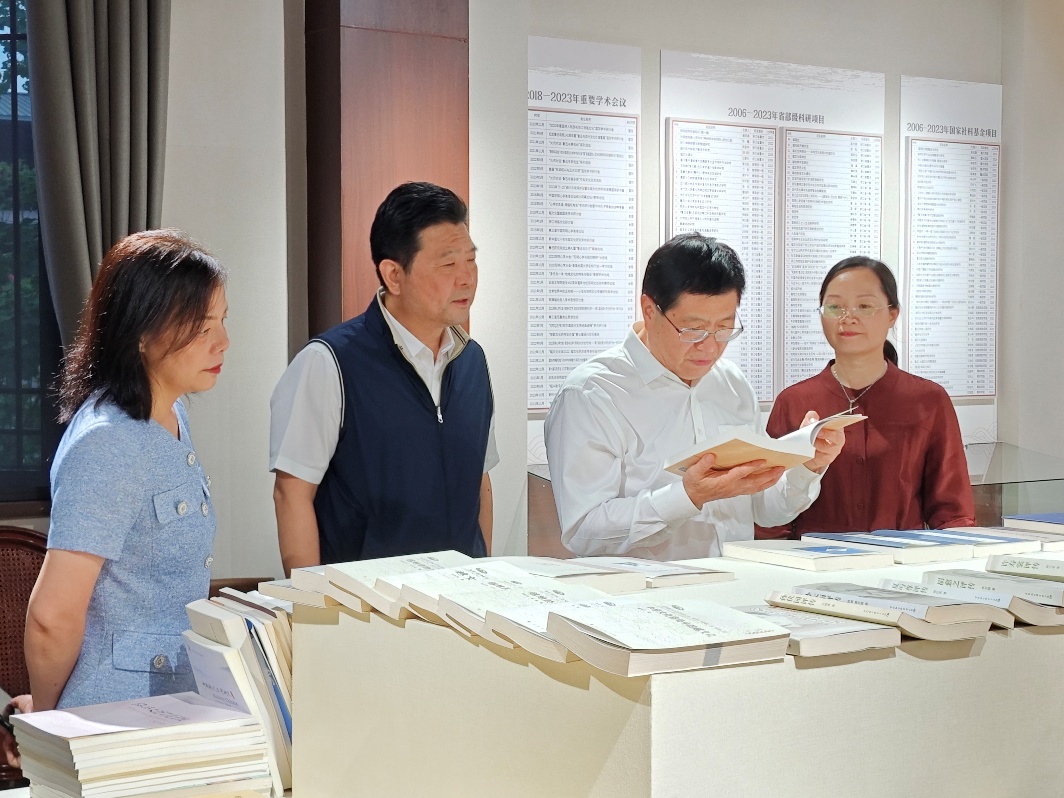 成岳冲一行参观了越文化研究院成果陈列室、多功能会议室及资料室等,详细了解学校在越文化研究方面开展的工作及研究成果,并对我校越文化研究工作给予了充分肯定。