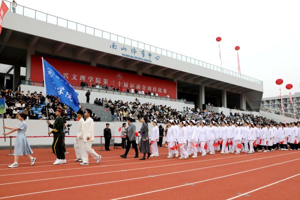 国旗、校旗、运动会会旗方阵,各学院代表方阵,体育教育专业方阵,优秀社团方阵,运动队方阵等依次入场,各方阵运动员们身着统一服装、迈着坚定昂扬的步伐,彰显出自信与活力。本届运动会有24支运动队、780余名运动健儿参加角逐,将产生男、女共计53个运动项目的金牌。