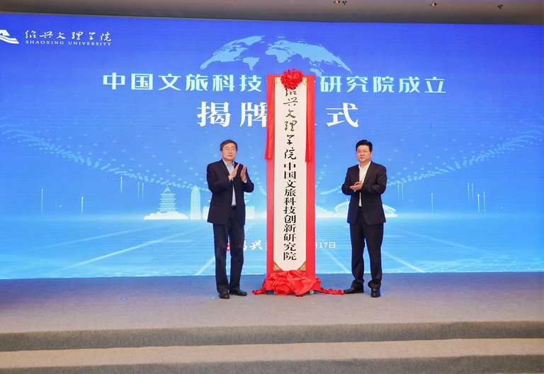 世界旅游联盟主席、文化和旅游部原副部长张旭和校党委书记崔凤军共同为中国文旅科技创新研究院揭牌