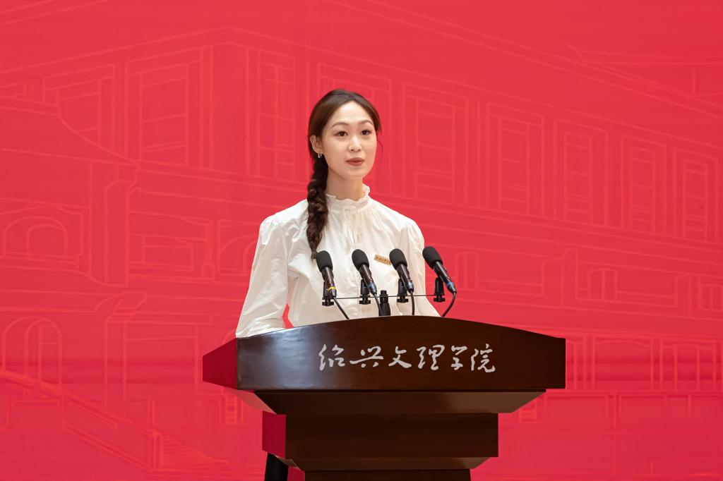获奖学生代表沈珈如发言,表示将怀揣着凡而不凡的热爱与追求,努力成为一名优秀的越地美育传承者。