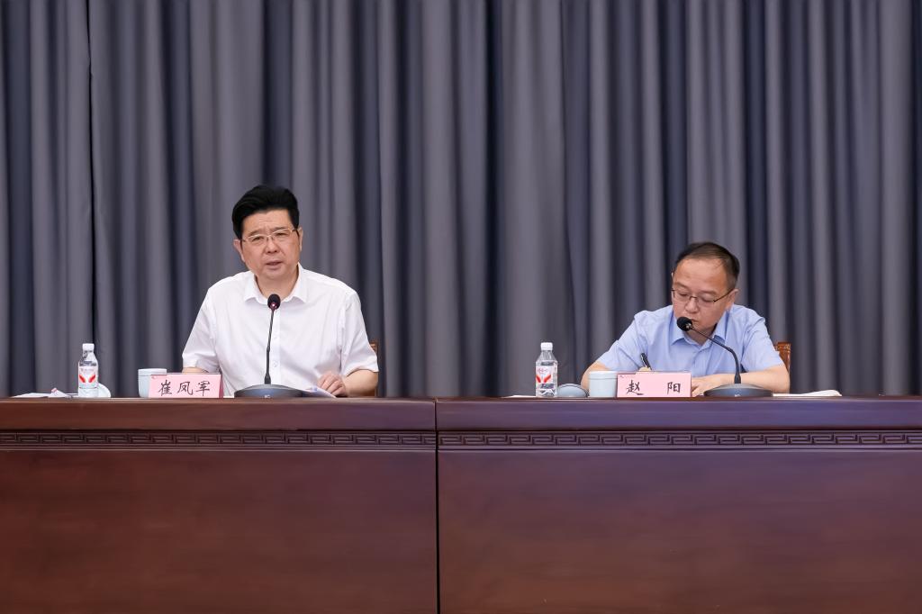 崔凤军在讲话中充分肯定了学校上半年在学科建设、人才引育等方面的显著成绩。他强调,当前学校正处于发展的攻坚期和黄金期,暑期是集中精力办大事的关键窗口,全校上下必须增强责任感和紧迫感,保持“提速奔跑、比学赶超”的奋进姿态,科学利用暑期时间。崔凤军指出,全校要持续深化中央八项规定精神学习教育,确保学习教育不断档、见实效;要聚焦短板弱项,全力以赴推进博士学位授予单位建设;要压实责任,主动出击,确保人才引进取得实效;要筑牢安全防线,重点防范意识形态风险,保障师生暑期社会实践、搬迁等活动安全;要加快推进校史馆、高等研究院等重点项目建设,优化服务保障,满足留校师生学习生活需求。学校将继续实行“硬任务、软安排”的暑期轮休制度,校领导班子成员及中层干部集中轮休时间为7月20日至8月10日。