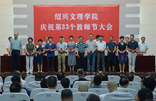 9月10日上午,学校在铁城科教馆一楼报告厅隆重庆祝第33个教师节。学校党政领导班子成员、全体中层干部、任教满30年的教师、第五届教学优秀奖获奖教师、2015-2016年度“师德标兵”、高级专业技术人员和博士代表、基层学术组织负责人、各民主党派负责人、各分工会主席、教代会执委会成员、全国省市人大代表和政协委员以及各级各类获奖代表参加大会。校党委书记汪俊昌代表学校党委行政向任教满30年和受到表彰的优秀教师表示热烈的祝贺,向辛勤工作在教学科研、服务战线上的全体教职工致以节日的问候。校长王建力主持大会。