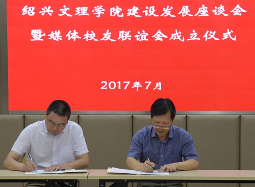 7月16日上午,学校媒体校友联谊会在铁城科教馆一楼会议室正式成立。校党委副书记沈赤、市委宣传部副部长黄爱芬校友为媒体校友工作室揭牌。绍兴日报社调研员,市新闻工作者协会主席鲁兰洲等36位校友被聘为媒体校友顾问团顾问。市委宣传部副部长、市社科联主席、党组书记黄伟英,浙江日报社绍兴分社社长周智敏,绍兴广电总台影视文化频道总监方静,绍兴日报社调研员祝诚,绍兴日报社首席记者钱峰等媒体校友,以及学校党委宣传部、对外联络处相关负责人出席成立仪式。仪式由校党委委员、宣传部部长陈均土主持。