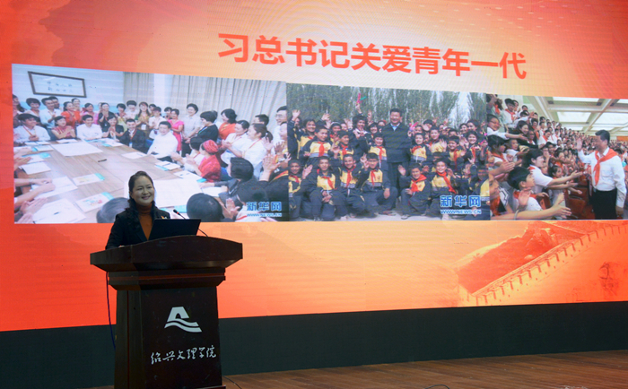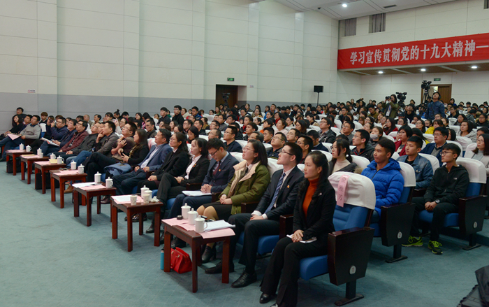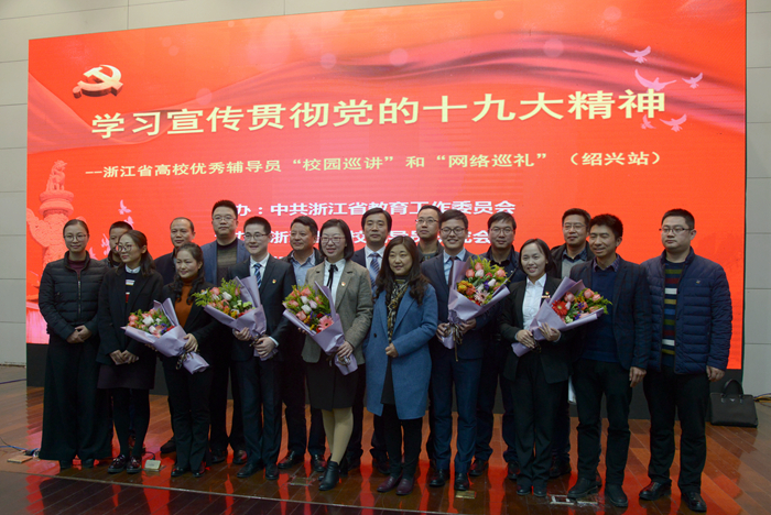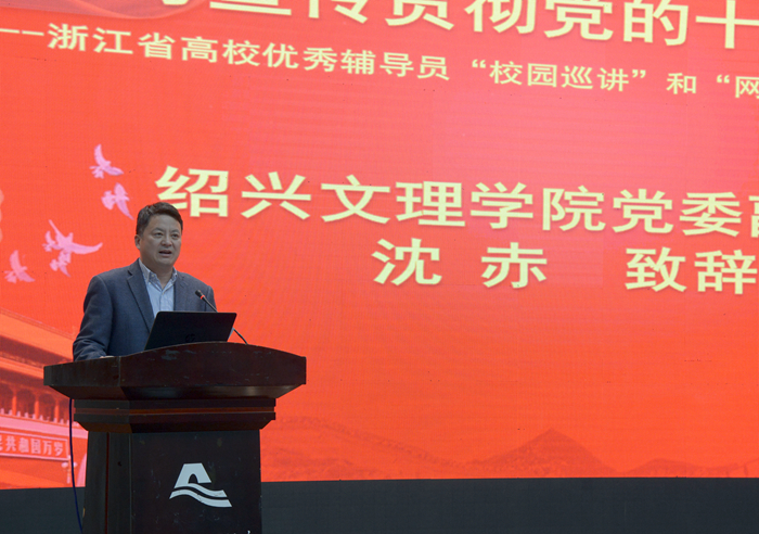 12月12日下午,“学习宣传贯彻党的十九大精神——浙江省高校优秀辅导员‘校园巡讲’和‘网络巡礼’活动”绍兴站在我校铁城报告厅举行。校党委副书记沈赤致辞。浙江省委教育工委宣教处副调研员丁晓,校党委委员、宣传部部长陈均土、市教育局高教处处长赵佳维以及绍兴片区11所高校党委学工部长和500余名大学生党员、辅导员代表聆听了宣讲报告。