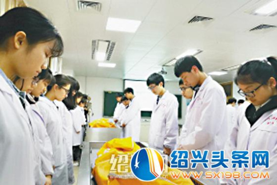 【编者按】3月28日上午,医学院临床医学专业2016级同学的第一堂人体解剖课在医学实验中心人体解剖实验室开课。课前,刘文庆老师带领所有学生对“无语良师”致哀缅怀。3月29日,《绍兴晚报》、绍兴头条网以《感恩奉献,敬畏生命  医学院学生肃立追思“无语良师”》为题,对此予以图文报道。